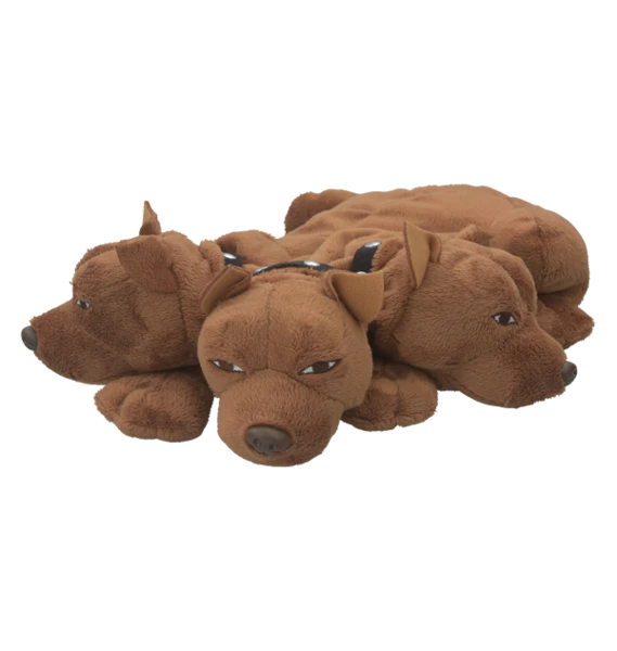 The three-headed dog replica has three areas to place your fingers to move each of Fluffy’s heads individually. The puppet has an all-over brown colouring and is complete with a brown acrylic nose and a black collar on each of the dog’s heads.