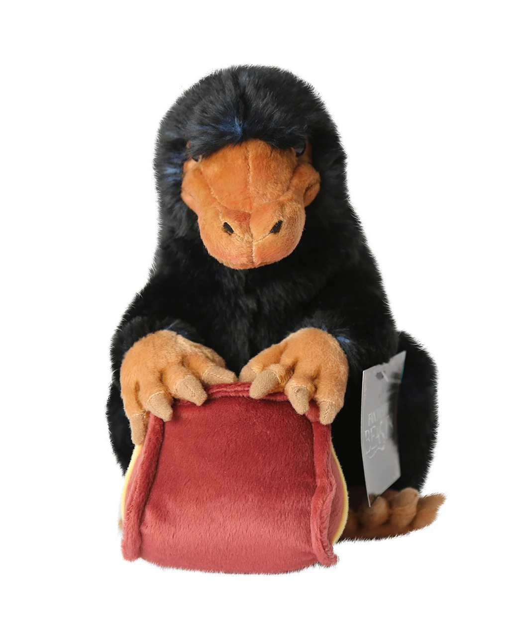 Enveloped in soft and fluffy black fur and complete with a miniature stuffed purse, this Niffler soft toy stands 22cm tall.