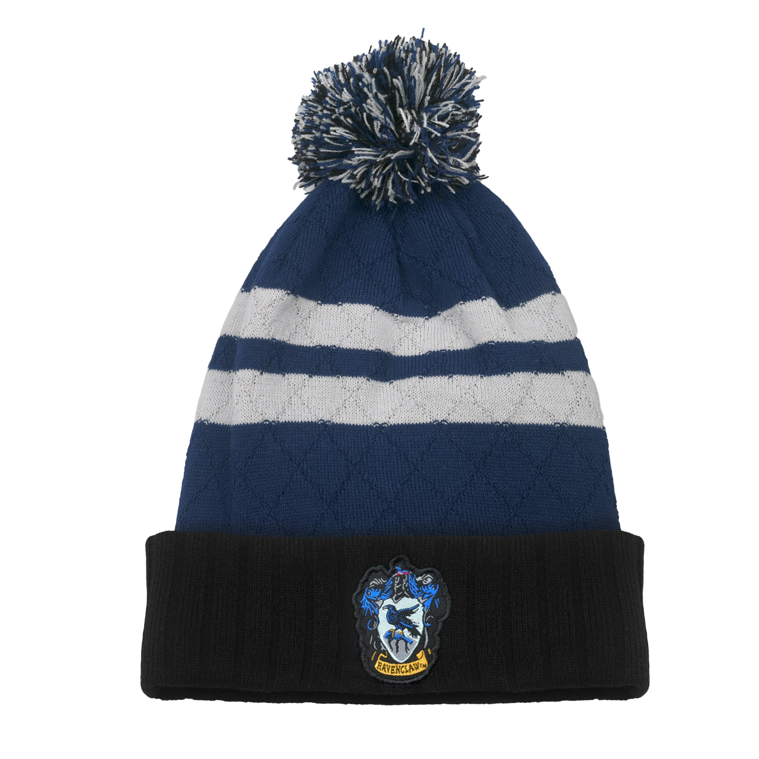 This striped Ravenclaw bobble hat will have you warm and comfy in the cooler weather. Offered in the traditional navy dark blues and silvered tones of Ravenclaw, there will be no doubt which Hogwarts house is your favourite!