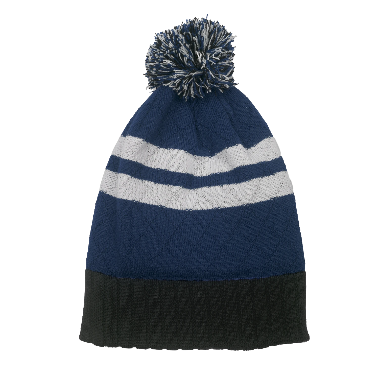 The thick ribbed headband features an embroidered patch of the house crest on the front, while the fun bobble on top sets the tone in a frosty white and blue mix. Two white stripes run the circumference of the beanie which sports a cosy quilted looking base.