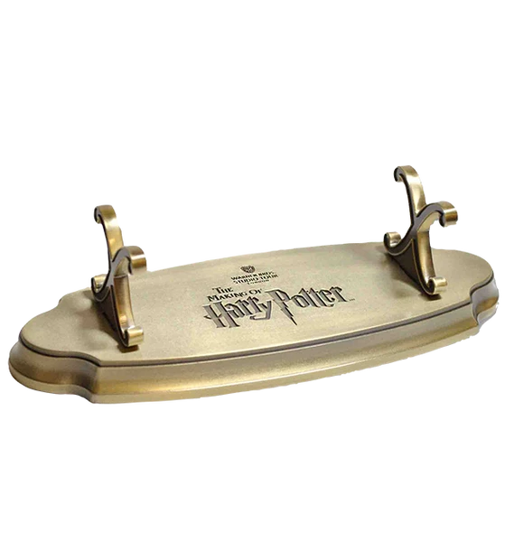Keep your favourite wand on display and show off your school pride with this unique wand stand, the perfect way to exhibit your collectable wand. This metal Harry Potter wand stand is embossed with the logo of the Warner Bros. Studio Tour London in the centre of the stand and is a great way to present your bespoke Harry Potter wand anywhere around your home. The stand has been designed with a gold finish and measures approximately 22x8x6cm. Please note collectable wands are sold separately.